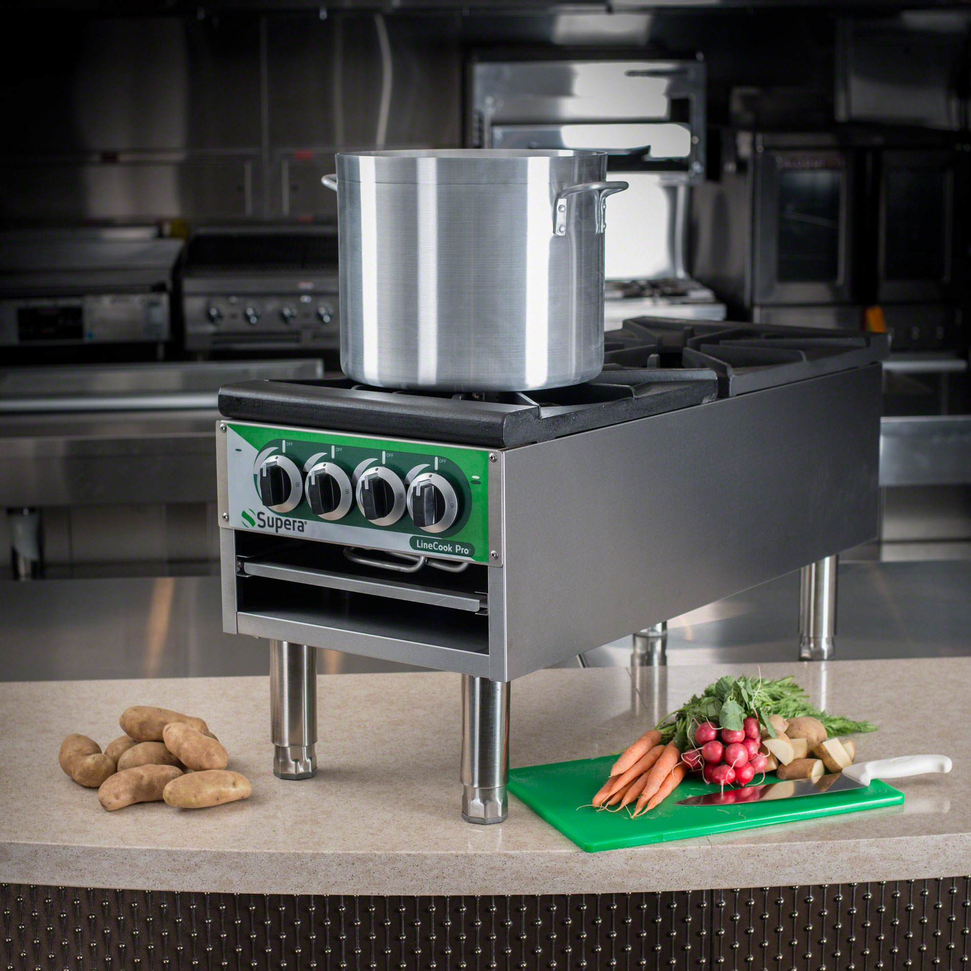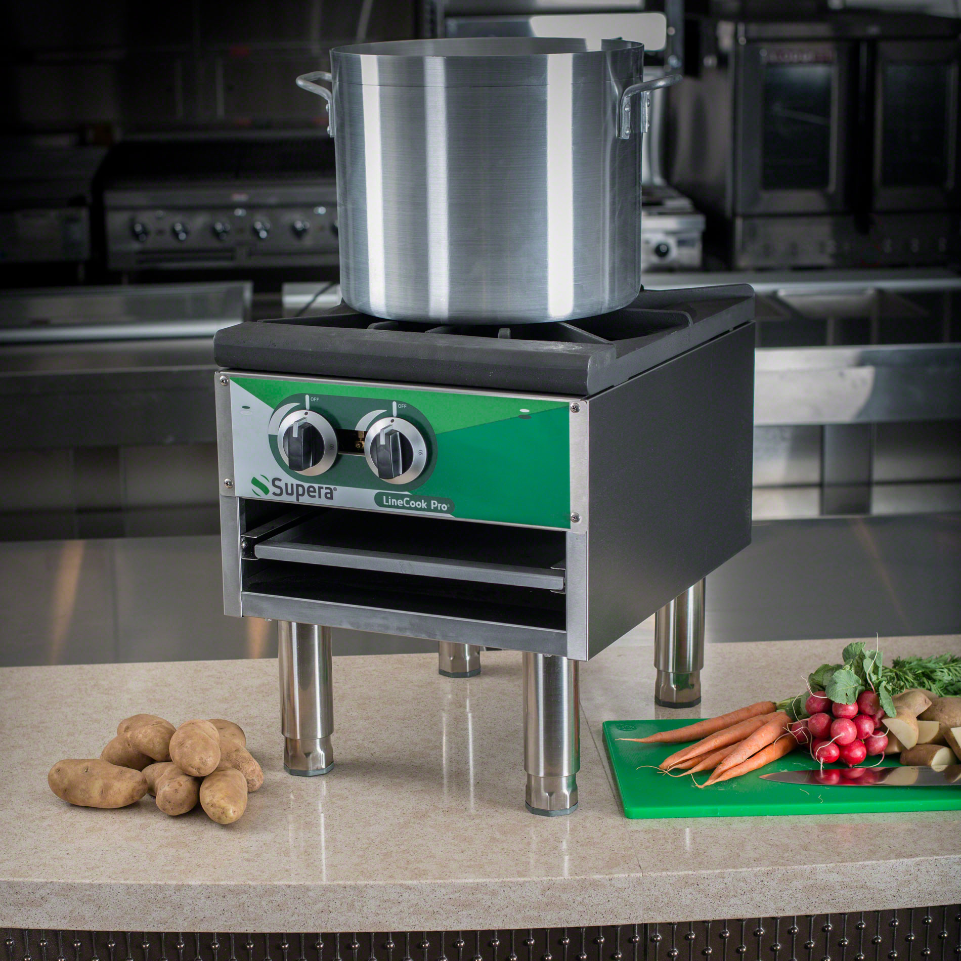 The 18″ Gas Single Burner Stock Pot Range (SPR1-1) by Supera is the perfect size for the little-kitchen-that-could. The single burner gives you the potential for a whole new variety of food options without taking over your kitchen like a full-size range. Integrate one of these units onto your countertop and then watch the magic happen.